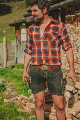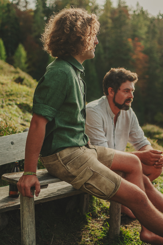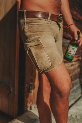 Unsere beliebte Freizeit-Lederhose Bergfexx gibt es sowohl in sämisch Hirschleder als auch in Wildbockleder.